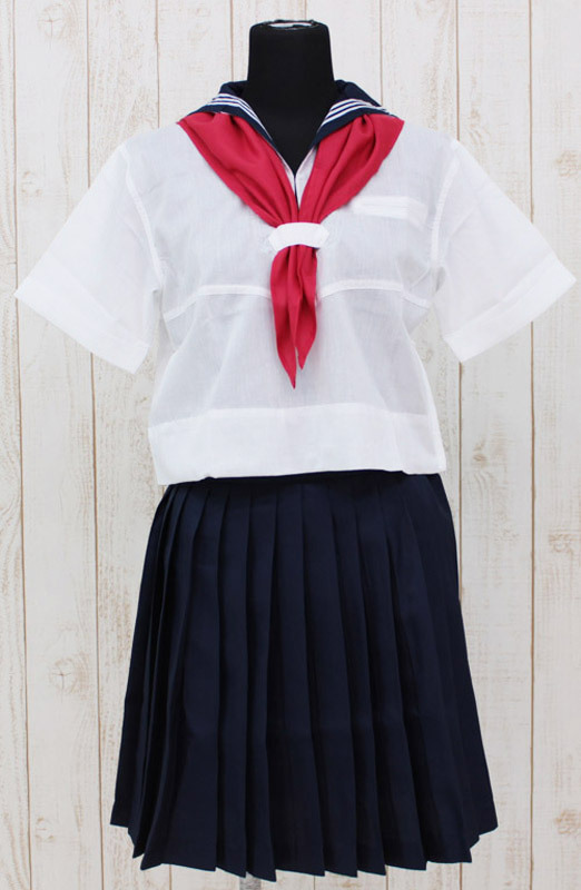 真っ赤なスカーフが抜群の存在感!定番のセーラー服カラーで仕上げた、学生服コスプレ(半袖)。●ホワイト×ネイビー×レッドの夏制服●スカーフ留め付きトップス●学生服定番のキュートなプリーツスカート●ぽっちゃり体型の方でも安心のBIGサイズ。小さめの襟がオシャレで可愛い!見た目、着心地ともに最高の制服コスチュームです。※水洗い不可、塩素系漂白剤による漂白不可、アイロンは中温で当て布使用、ドライクリーニング可、色落ちの可能性があります、ご注意ください。※こちらの商品は在庫の状況によりお届けまでに4日〜7日程度かかる場合がございます。