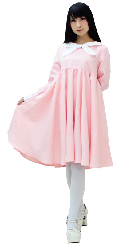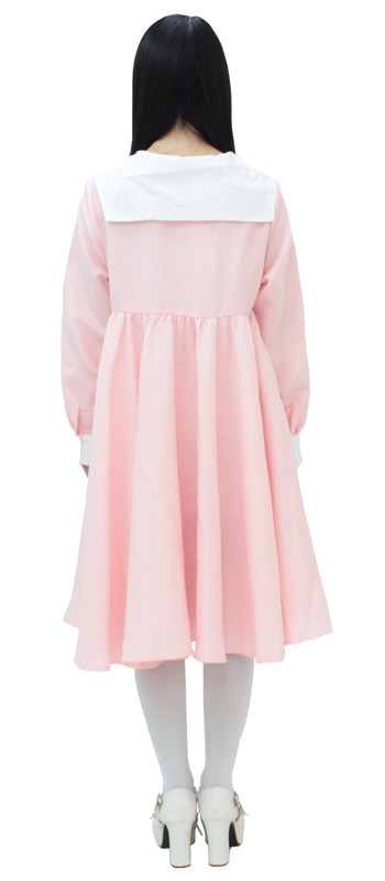 可愛らしさあふれる薄桃色でお嬢様に♪清楚なワンピースタイプのセーラー服。●ピンク×白のセーラー襟ワンピース●美シルエットのハイウエスト仕様●サイドファスナーで着脱可能●袖口はスナップボタン留め●大きめBIGサイズ。ふんわりフレアに広がるロング丈のワンピースを、セーラー襟で制服風にアレンジした可愛らしいコスプレ衣装です。※ストッキングは付属しません。※水洗い不可、塩素系漂白剤による漂白不可、アイロンは中温で当て布使用、ドライクリーニング可、色落ちの可能性があります。※こちらの商品は在庫の状況によりお届けまでに4日〜7日程度かかる場合がございます。