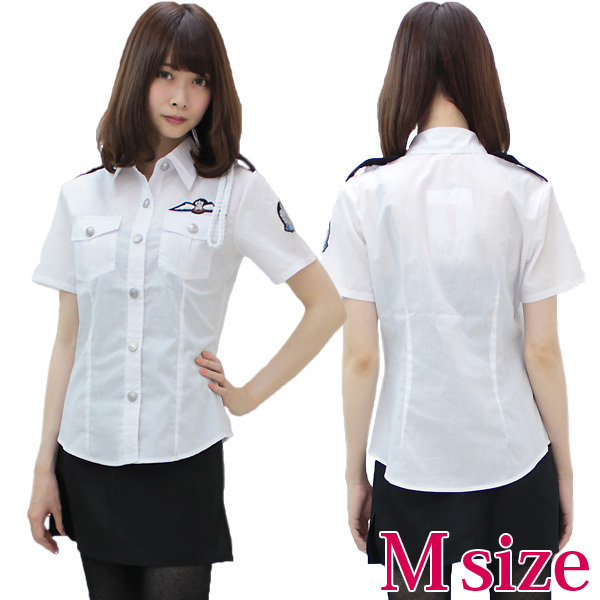 イタズラばかりしていると逮捕しちゃうぞ♪ミニスカートから大胆に露出した美脚が超セクシーな婦人警官コスチューム。●ホワイトカラーの半袖ブラウス(前開きボタン)●実用的なポケット付き●左肩にロープ付き(取り外し不可)●シンプルだけどオシャレ感のある銀色ボタン●スリット入りのタイトなミニスカート(後ろコンシールファスナー)●女性用Mサイズ。クールにカッコよく決まると同時に、大人の色気も感じさせるセクシーなポリスコスチュームです。※水洗い不可、塩素系漂白剤による漂白不可、アイロンは中温で当て布使用、ドライクリーニング可。※セット内容以外は付属しておりません。