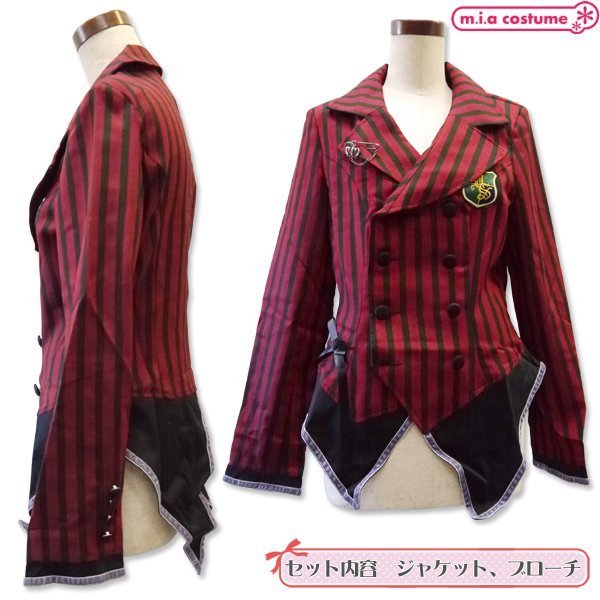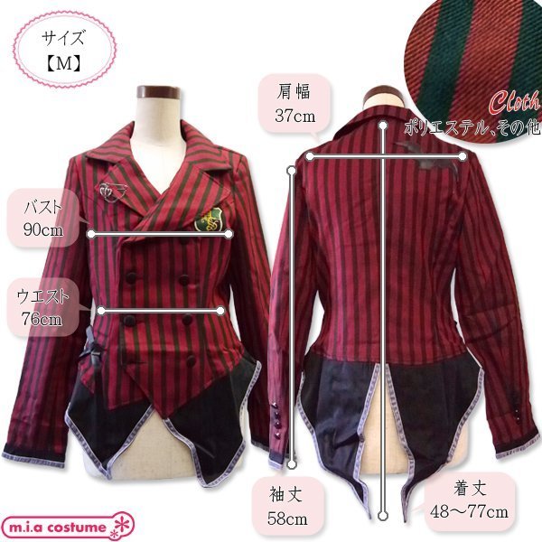 Mサイズ:B90cm・W76cm・肩幅37cm・袖丈58cm・着丈48〜77cm セット内容:ワッペン付きジャケット(前ボタン)、ブローチ 素材:ポリエステル、その他