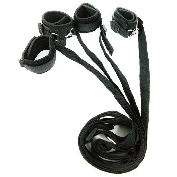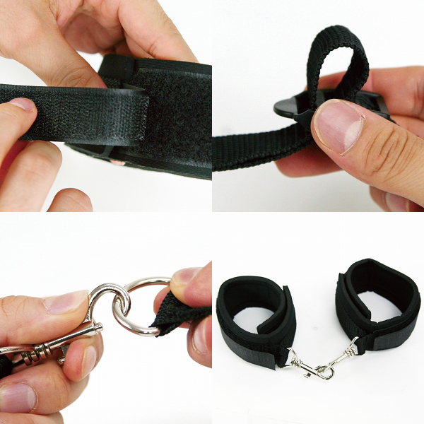 ベッド拘束プレイを自宅でも!あなたの欲望を叶えるSMグッズシリーズ「ELock」。ベルトをベッドの下に通して上下から出し、手枷と足枷をパートナーに装着したら完成!ベッドの脚に繋がなくても良いので、マットレスタイプでも使用可能です。枷はマジックテープ式でサイズ調節も楽々!肌に当たる部分はソフトなウレタン素材を使用し、お肌を痛める心配もありません。エロ絵師、尾髭丹氏の肉感的なパッケージにも注目です。※設置場所の状態を確認してからご使用ください。