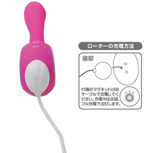 ポップなカラーと丸みのあるフォルムがキュート♪高級安全シリコン製のUSB充電式バイブ「LOVE RABBIT(ラブラビット)」。リング状の持ち手付きで扱いやすい二点責めバイブレーター。10種類の振動パターン&振動強弱8段階の調整が可能!静音タイプながら弱振動から強振動まで80パターンを搭載。生活防水設計なのでローションたっぷりでも使えます。電源はマグネットタイプのUSB充電式を採用!使用環境により変化する場合がございますが、約2時間のフル充電で約60分〜90分使用可能です。