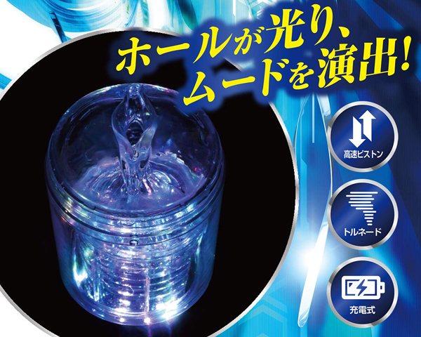 超高速回転&超絶ピストン!!ピストントルネードが、電動オナホールに旋風を巻き起こす!!挿入してボタンを押せば、回転&ピストンスタート。うねるようなトルネード回転が、亀頭や竿を刺激。10種類の超快感に、キミは耐えることができるか?ホールは取り外して丸洗いOK。ライトボタンを押せば本体内部が光り、ムードを演出。驚愕の快感を堪能せよ!!