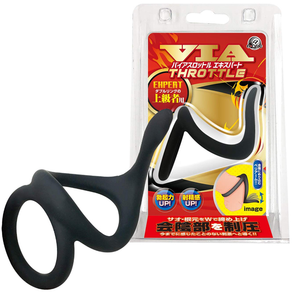 男性器を根元からギュッと締め付け会陰を圧迫刺激!射精を超えた快感を追求する男性のためのペニスリング「バイアスロットルリング」。人間工学に基づき設計されたリングが身体にジャストフィット!大・中2つのリングで締め付けながら突き出たペリアームで会陰を刺激、射精感と勃起力を大幅に増幅させる♪使い慣れた中級者から上級者まで、ドライオルガのような極上の快感を求める方に。