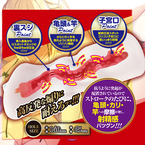 うねる膣道を突き進む爽快感。カリに直撃!抗うように配置された高反発な煽りに耐えて突きススメッ!【裏スジポイント】…挿入直後からGスポットギミックのちゅぽちゅぽ圧迫【亀頭&竿ポイント】。さらに行く手を阻むように刺激するゾリゾリ隆起【子宮口ポイント】。最終圧迫スポット・コリコリ子宮口に思いっきり射精さぁ、カリを鍛えて次の対戦までに備えよっ!・非貫通・純国産・ローション付属