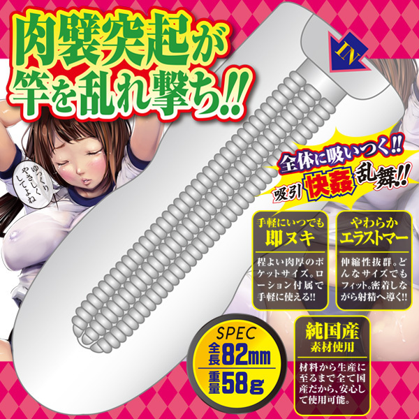 性欲女子とサクッとひとヌキ!エーワン×尾髭丹が送る最強ミニオナホシリーズ!肉ヒダ突起の連続で射精感をグングン高めてくれるミニサイズの非貫通オナホール!肉襞突起が、サオを乱れ撃ち、ゾリゾリ感が心地いい!程よい肉厚のポケットサイズの、ローション付属なので手軽に使える!更に材料から生産に至るまですべて国産で安心。4種まとめて味くらべしちゃおう♪