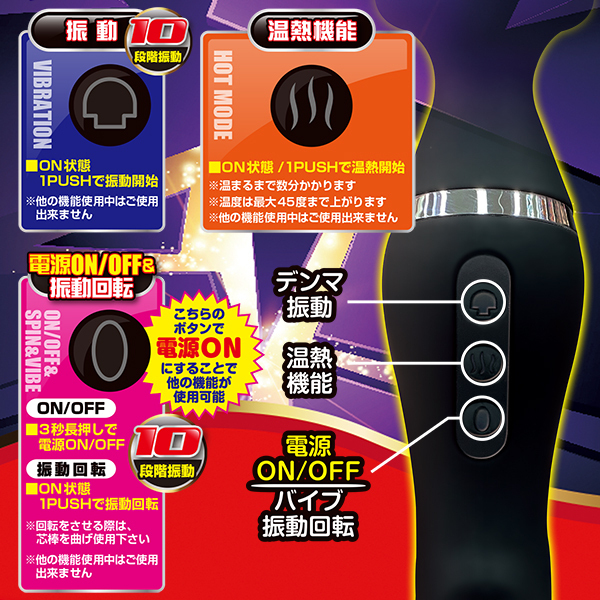 ギャル系AV女優のカリスマ「AIKA」が再び悶絶!「デンマブラック (AIKA G)」。あの人気のデンマブラックAIKAがパワーアップして再び登場!今回はヘッドとテールの両方が使える双頭タイプでクリもアソコもGスポットも乳首も全て満たしてくれます♪バイブヘッドはフレキシブルに曲がる設計で使いやすく挿入しやすい!スイング角度も自在に調整可能でGスポットを狙い撃ちしたり、振動や回転機能に加え人肌まで温まる温熱機能搭載で人肌を感じながら絶頂を迎えられます♪ナカでも外でも昇天潮吹き!スイングと振動するよくばりデンマで全力潮吹きを愉しもう!電源はUSB充電式で約2時間半の充電で連続使用は約60分。ボディ素材はシリコンでマットな肌ざわりにくわえ、10段階の重厚感ある振動が楽しめて生活防水仕様だからメンテナンスもラクチン♪グリップ部分が細くなっているので女性でも持ちやすいです。