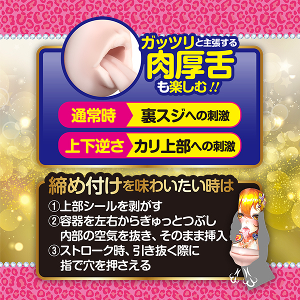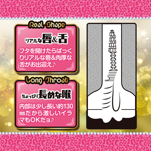 生意気そうなメスガキギャルのお口にドピュッと種付け!超ウケる★精子ガン飲み主観フェラカップ!目が合うから臨場感UP★★★★★フタを開けたらリアルな唇と肉厚舌がお出迎え♪内部長はちょっぴり長い約130mm。喉奥まで突っ込んでイラマも楽しめる。<内部形状>●リアルな唇&肉厚舌●繊細な横ヒダと2列の縦突起●2連のど輪・純国産・ローション付属