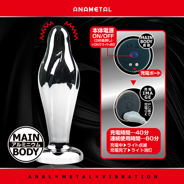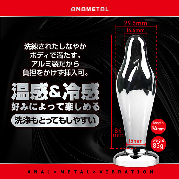 遠隔リモートプレイが可能なアナル用メタルプラグ。高品質のアルミニウム製で、表面がつるつる滑らか。挿入感もとっても心地良く、扱いやすさも抜群。冷水や温水につけて、時にはひんやり、時には温かく、好みに合わせて楽しめます。遠隔式なので1人でも2人でも様々な遊び方が可能です。<GUY特徴>でっぷりしなやかなボディが満たし、圧迫感を内部に与えます。・10段階振動・遠隔操作(操作飛距離8m)・本体生活防水(リモコンは防水ではありません)。充電時間:約40分/連続使用時間:約60分※温冷機能ではございません。
