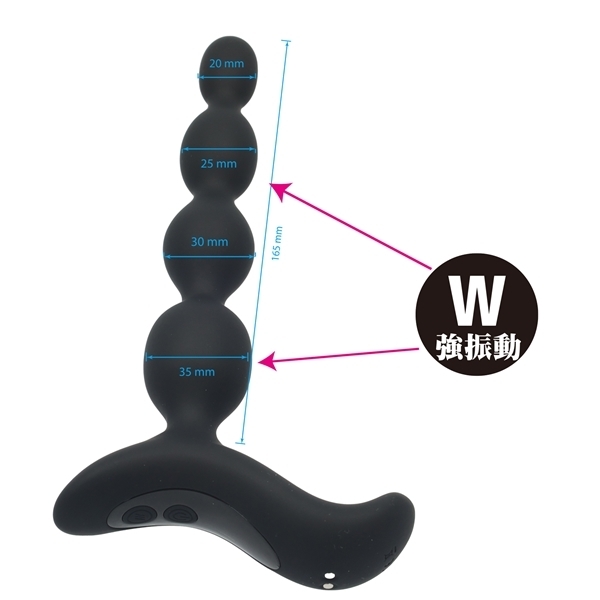 BOSSシリーズから充電式のビーズバイブが新登場です。しっかり奥まで届く強振動モーターが先端下部と最下部に搭載されているので、より欲しい快感部位に届くように設計されています。IPX5準拠の防水性能をもっており、丸洗いもOKな作りです。全体がしなやかな柔軟性を持っているので、体勢の変化やアナル、そして女性にも効果的にご使用いただけます。充電式なので面倒な電池交換も無く、ランニングコストも安心です。強力な快感開発バイブとしてお楽しみください。