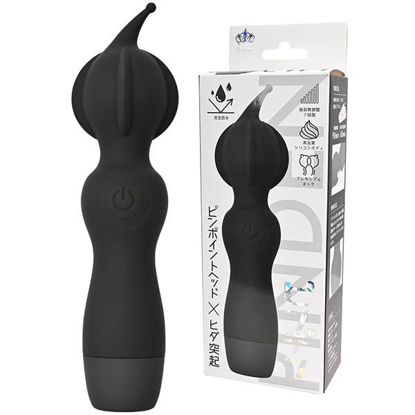 ピンポイントヘッド・ヒダ突起付の完全防水シリコンデンマです。上質振動の強力モーター搭載・高品質シリコンボディ・フレキシブルネックの上級性能に加えてピンポイントを強力刺激出来る先端突起と割れ目に入れて楽しめるヒダ突起形状をプラスしました。振動も一般的なパターン振動では無く、こだわりの強弱微調整可能な7段階振動です。もちろん普通のデンマスタイルも可能なので色々な楽しみ方が出来ます。しかもIPX7の完全防水性能だから使い勝手もバツグンです。90分満充電で60分使用可能(使用環境により大幅に増減します)なリチウムイオン電池内蔵。パワフルなのに繊細な使い方も楽しめるデンマです。●カラー:ブラック