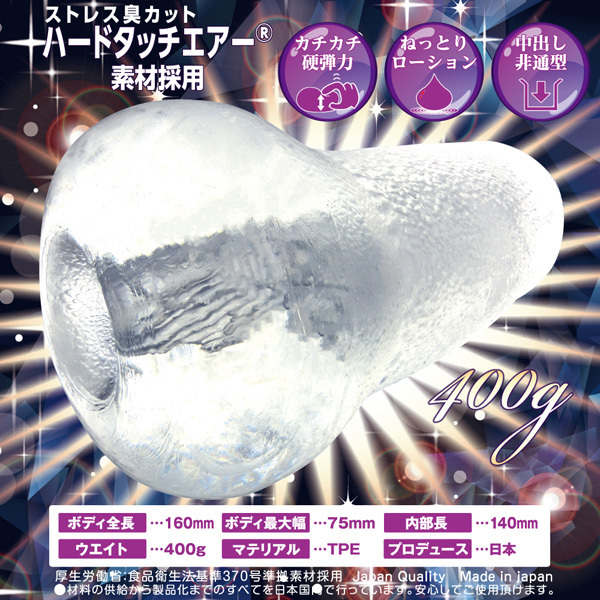 尖った刺激が一押し♪ぷりっと高弾力なハードタッチエアー素材を使用したクリアな国産製オナホール(非貫通型)。優しげな丸い見た目とは裏腹に、三角形の挿入口やホール内部の三角形状ヒダが、エッジの効いた鋭い刺激を生み出します♪「撫でる」「かかる」「擦る」の3つのギミックで貴方をハードに昇天させる!ローション付属