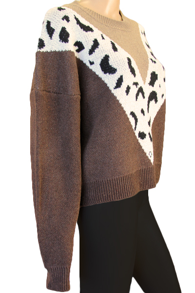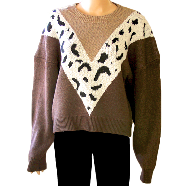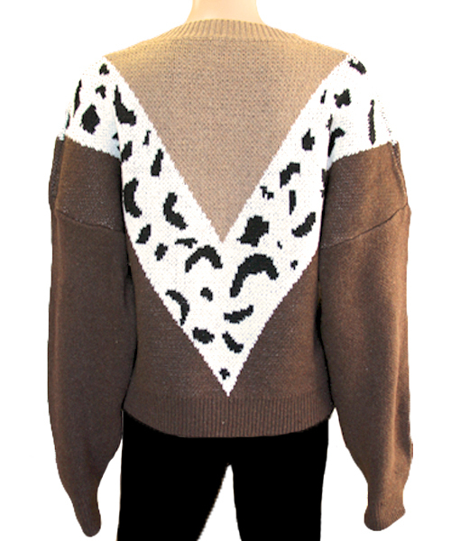HOME > 衣装・コスチューム > その他 > V字ラインのヒョウ柄ニットセーター Mサイズ ブラウン