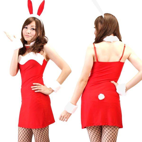 色鮮やかな赤×白のカラーが、女の子らしくてセクシーな印象のバニーガールのコスチューム。胸元やシッポ、襟…さらにはバニーの耳やカフスに至るまで、白の部分は全てモコモコのファーでデザインされたこだわりの逸品!