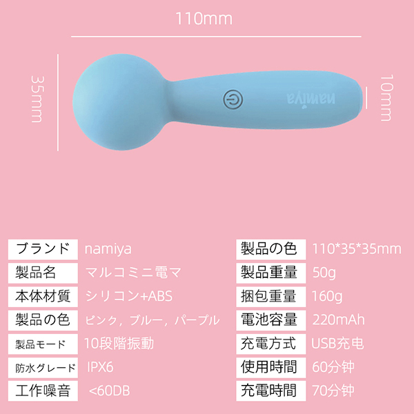 【ローター・バイブ可愛すぎるワイヤレスの強力小型電マ!!】使った瞬間からえっと!こんなに強い?!思わずビックリほどのパワフルで愉悦感を増やし不思議な快感が全身が満たされるまでゆっくりと体内に広がり10種類の電気パルス振動で体を一層盛り上げます。手のひらより小さくて超便利、優れる静音性と防水仕樣でいつどこでもでもより気持ちよく性活を実現。【僅か70g!高品質シリコン素材】軽量なので時間使っても手が疲れません。ソロでもカップルでも使える便利のアイテム!ぐいっと満足感が下から全身に伝わり潮が飛び散るほどの快感をたっぷりご堪能ください。直接肌に触れるものだから、さらさらすべすべの高品質シリコン使用しています。無毒・無臭・衛生、清潔も便利です。デリケートなお肌に当てっても大丈夫!【10種類振動パターン+全身感じる繊細な心地】サラサラとしたシリコンは触り心地も肌馴染みも抜群!クリトリスやバスト、ペニスにももちろん気持ちいいですが、太ももや首筋、背中や耳朶など全身に使ってもオススメ。先端の波デザインはさらにアクセントになって繊細に心地よく感じさせます。【マグネット充電+静音防水】新型マグネットで安定安心充電できます!生活防水仕様となっているので、お風呂やプールなどの水場で楽しんだり、使った後は水洗いしてお手入れすることができます! また次も安心して楽しむことができるのも魅力です!カラー:パープル●生活防水(IPX7)●10段階振動●医療用シリコン素材、ABS●USB充電●充電時間:70分、稼働時間:60分●電池容量:220mah※こちらの商品は受注発注商品の為、ご注文から発送までに3、4営業日掛かる場合が御座います。