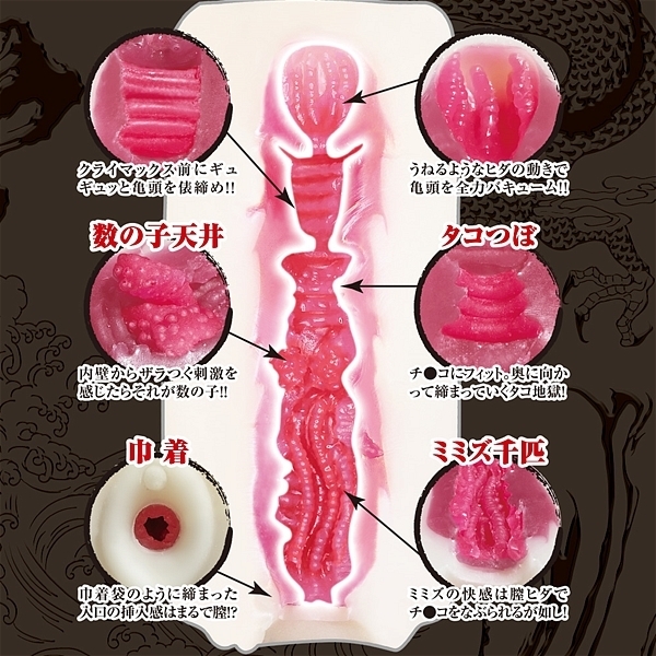 完全なる日本の名器!「超越名器」の登場です!古来より日本の名器と言われる名器…それは!@巾着巾着袋のように、膣の入り口が締まっている名器が巾着!Aミミズ千匹膣のヒダがミミズが動いているように感じるほどのヒダがミミズ千匹!B数の子天井中の上部内壁がザラザラとした物があり、そのザラザラとした部分がが数の子のように感じるのが数の子天井!Cタコつぼ内部が男性器にフィットし、奥の方が締まっていくというのがタコつぼ名器!D俵締め。内部に数か所の締まる部分が存在する。それが俵締め!Eイソギンチャクうねるようなヒダの動きと吸引する名器がイソギンチャクです!この6つの名器が一つに合体した!それが超越名器なのです!名器という名器を超越した最強名器がここに誕生!全ての名器が合体した最終名器システム!これこそが日本が誇る名器オナホです!
