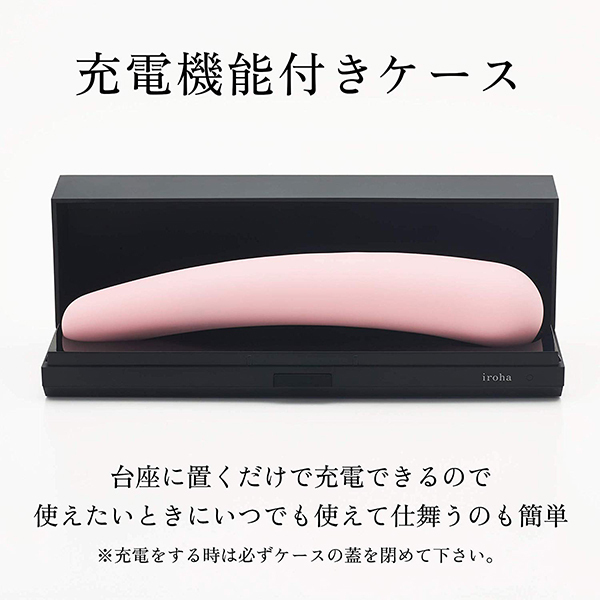 「iroha」ユーザーも愛用!緩やかにカーブを描く流線型状のストレートバイブ「みかづき」。通常のものと比べて細くiroha特有のモチっとした柔らかな質感が、初めてでも挿入しやすいと好評♪身体にフィットする構造で気持ちの良い部分をしっかり刺激してくれる!人肌恋しい夜のお供に是非♪お風呂でも楽しめる防水設計、充電機能付きケース付属