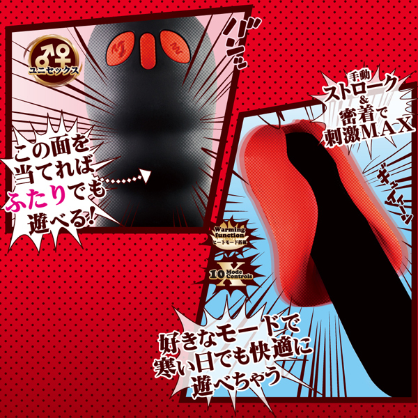 寒い季節に嬉しい温感機能が付いたUSB充電式の電動オナホ。シリコンボディが優しく包み込みブルブルと振動!10種類の振動パターンが豊富な刺激を味わわせてくれる♪しっかり密着させながらストロークすれば気持ちよさ倍増!ヒートモードを加えることで寒くても快適に楽しめます。また、使い方次第で男女一緒での使用も可能◎丸ごと洗える防水製、150分充電で100分稼働可能