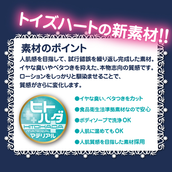 超人気イラストレーター「宮瀬まひろ」氏描き下し!4種のリアル粘膜構造でまったり楽しむロングプレイ用非貫通オナホ。ローションの馴染み方で質感が変化する、人肌質感の新素材ヒトハダマテリアル採用!極限まで細く高く作り上げた繊細なヒダギミックで刺激と興奮を与える♪頑張る自分へのご褒美に、本物のような粘膜質感でワンランク上のプレイを是非どうぞ。日本製