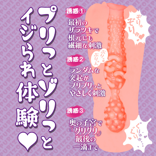 プリッとゾリッとイジられ体験!淫靡な挿入口で抜き感バッチリな非貫通オナホ「もしも 隣のむっちり人妻ギャルが誘惑してきたら」。ゾリゾリ感やプリっとした弾力が味わえるコンパクトタイプのホールで軽量だからストロークしやすく扱いやすいのが特徴です♪最初のザラツキで根本にも繊細な刺激が感じられ、ランダムな突起がブリブリっとやさしく刺激しながら射精へと誘う!最奥では大粒で亀頭全体を刺激されながら、奥の子宮でグリグリ最後の一滴までイカされちゃってください♪