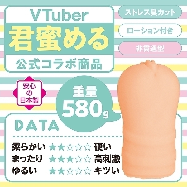 VTuber君蜜める公式コラボ商品、露出狂風味共依存要求型承認欲求マシマシドスケベ痴女VTuber、肉厚で蕩けるような気持ちよさ!メルティホールは蕩けるような挿入感を愉しめるオナホール、あなたを一瞬で虜にして心を満たし、いやらしい気持ちにつつみこみます。肉厚で柔らかいプニプニの肉壁、ドクドクと脈打つような高刺激、ゾリゾリと敏感部分をなぞるような快感、柔らかく蕩けるように包み込む抱擁感、吸い付き搾り取るバキューム力。