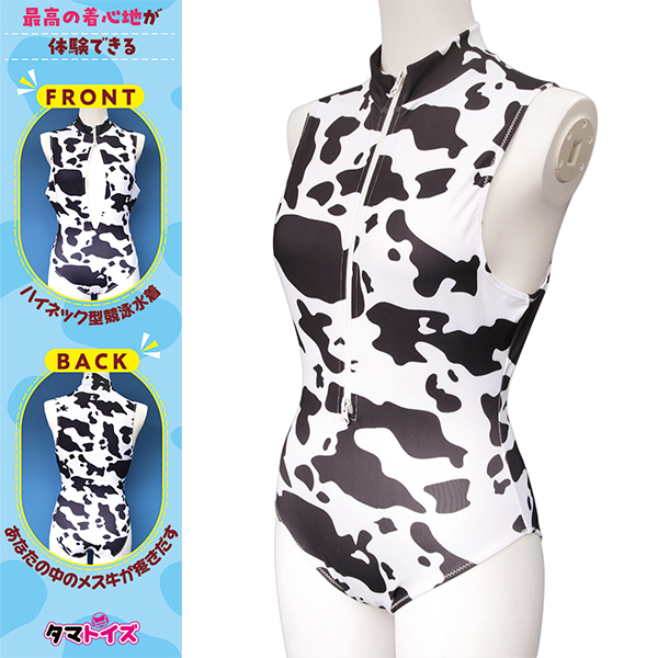 牛柄フロントファスナー競泳水着 おとこの娘用