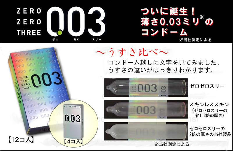HOME > コンドーム・避妊具 > 薄い・厚い(早漏防止) > オカモト ゼロゼロスリー003