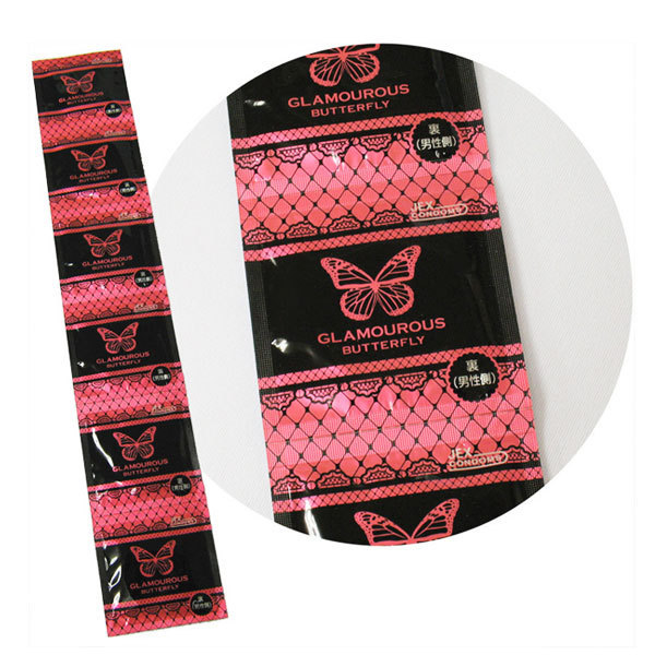 「女性たち自身が欲しくなるコンドーム」をコンセプトとして作られたお洒落コンドーム(6個入)。デザインはもちろん、あれもこれも欲しい女性ならではの悩みにお応え!なんと、先端の女性側にマリンコラーゲン、ヒアルロン酸配合の潤いゼリー付き。女性ウケを一番に考えたグラマラスバタフライシリーズは、モニター調査で選ばれ抜いたベストオブコンドームです。
