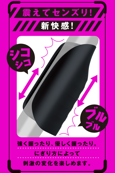 擦って震えて新感覚!包み込んで刺激する電動オナホ。滑らかな手触りとプニッと質感が特徴の高品質シリコンを採用!内側にはイボとウェーブ状ヒダを設置し、フィットしながらダブルで刺激♪かける圧力によって快感の変化が楽しめる!9種類の強力振動が味わえるローター搭載、丸洗い可能なIPX7等級の完全防水製。長時間でも疲れにくい超軽量94g