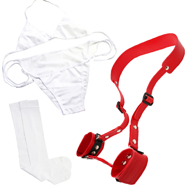 パッケージ:30.0×19.8×5.0cm 本体:フリーサイズ セット内容:枷、ブラ、ショーツ、ニーハイ 重量:230g