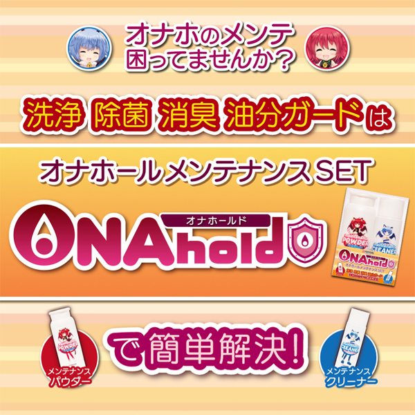 オナホのメンテナンス困ってませんか?「オナホールド」はクリーナーとパウダーがセットになったオナホのメンテナンス専用グッズです。この2本のセットだけでオナホを「洗浄、除菌、消臭、油分ガード、保管対策」することが可能です。<メンテナンスクリーナー>使用後のオナホを清潔に!オナホ専用に独自配合した洗浄液が除菌・消臭効果を発揮し、清潔に保ちます。まるで新品オナホのようにスベスベ感触をいつまでも!<メンテナンスパウダー>ベタベタになりがちなオナホをサラサラ感触に!メンテナンスクリーナーで洗浄後に表面に振りかけ全体に馴染ませてください!オナホールドでオナホライフを安心、安全にお楽しみください!