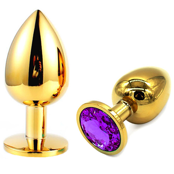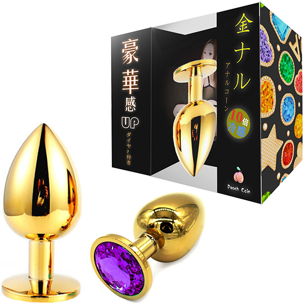 金色のプラグにキラキラとしたゴージャスな輝き!メタルの重量感・冷感がアナルを刺激し見た目も華やか。サイズもS・M・Lの3サイズあるため、お好みのサイズとカラーでお楽しみください。Lサイズ、パープル