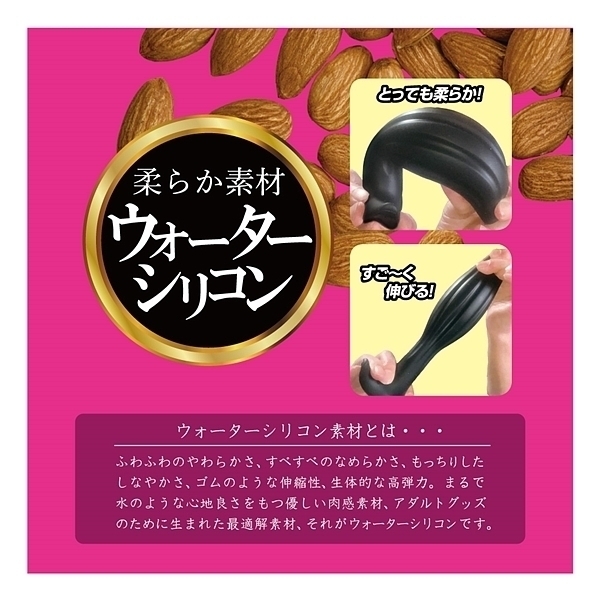 アーモンドフォルム×ウォーターシリコン!形状と素材にこだわった、新感覚ア●ルプラグが新登場!アーモンドナッツのような形状は、先端部に向かってすぼんでいく流線フォルムとなり、スルッとした挿入感を生み出します。さらに、中央部に配置された縦縞状のくぼみが、空気や液体の通り道となり、挿入心地をサポート。最下部は返しの付いた錨モデルで、ヒップラインに沿ったデザインが違和感を低減させます。本体素材には、最先端のウォーターシリコン素材を使用しました。水のように柔らかい、と大評判の人気素材です。すべすべな滑らかさ、もっちりとした肉感弾力、ゴムのように伸びる高伸縮性。あなたにピッタリ寄り添う恍惚素材とスムーズなインサートとなる快感型状で、新しいア●ルプラグです。「L」は太さ58ミリのエキスパートモデル。