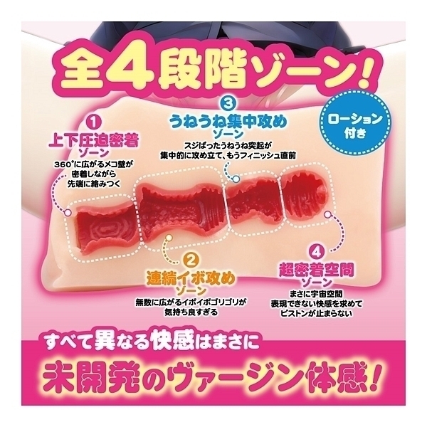 これぞ、うぶナマ名器!外はフワフワ、中はキツキツ、異なる素材で快感を強める2層構造タイプ!ずっしり重量約500グラムだから、大ボリュームに包まれる!内部構造は、フレッシュな新人ちゃんを再現したバージン体感。上下圧迫吸着、連続イボ攻め、うねうね集中攻め、超密着空間、と目まぐるしく変化する4段階ゾーンの構造設計です!外はぷにゅぷにゅのふわんふわんなのに、中はねっとりキツキツ。密着度MAX、圧巻の名器バキューム!未開発の新人ちゃんを優しく教育してね♪