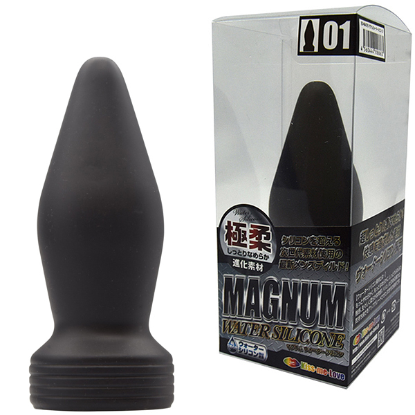 ブラックが冴えわたる本格派ディルドが最新素材になって新登場!極上素材を採用した「マグナム ウォーターシリコン」!黒い欲望を満足させるエキスパートなボディライン。その魅力をそのままに素材をグレードアップしました。シリコンを超える進化素材。超しっとり凄なめらか快感度を追求した進化素材、それがこのウォーターシリコン素材なのです。しっとりきめ細やかな質感に生々しい生体的な肉感弾力、人体や環境にも優しい安心材料。アダルトグッズのステージを高めべく進化したマテリアルです。熟練者向けのマニアな形状に極上の肉々しさをプラスしたゴージャスなディルドです。調教や拡張などのハードコアでエクストリームなプレイにぴったりなシリーズとなりました。「MAGNUM」の名の通りパワーあふれる快感をご体験ください。「01」は、太さ5センチの弾頭型フォルム。コンバットなデザインが興奮を煽る!