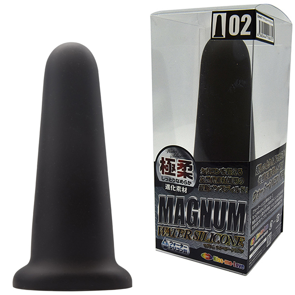 ブラックが冴えわたる本格派ディルドが最新素材になって新登場!極上素材を採用した「マグナム ウォーターシリコン」!黒い欲望を満足させるエキスパートなボディライン。その魅力をそのままに素材をグレードアップしました。シリコンを超える進化素材。超しっとり凄なめらか快感度を追求した進化素材、それがこのウォーターシリコン素材なのです。しっとりきめ細やかな質感に生々しい生体的な肉感弾力、人体や環境にも優しい安心材料。アダルトグッズのステージを高めべく進化したマテリアルです。熟練者向けのマニアな形状に極上の肉々しさをプラスしたゴージャスなディルドです。調教や拡張などのハードコアでエクストリームなプレイにぴったりなシリーズとなりました。「MAGNUM」の名の通りパワーあふれる快感をご体験ください。「02」は、太さ4〜6センチの円錐型フォルム。挿れるほどに太くなる魅惑の快感!
